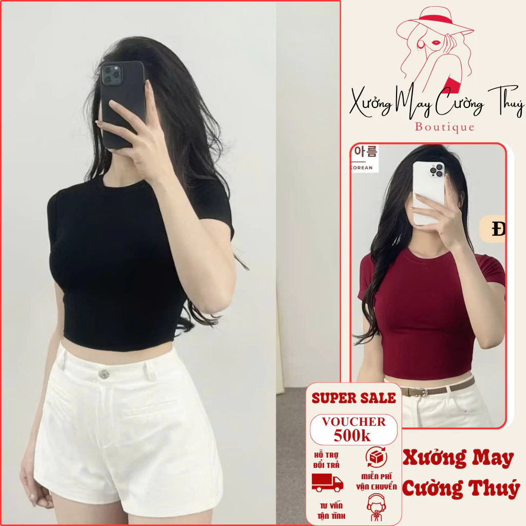 ✅ Kiểu dáng: Croptop tay ngắn, cổ tròn basic, ôm nhẹ tôn eo